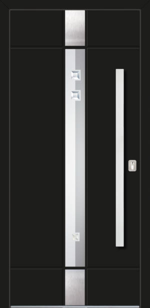 Lieferbar mit Seitenteil und Oberlicht, elektrischem Türöffner, automatischem Schließer, integrierten Briefkasten und Klingelanlagen und vielen